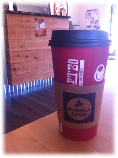 The subtle instrumental background music was the perfect accompaniment to my writing. The style seemed somewhere between Mediterranean and Middle Eastern to me. I'll have to ask my jazz player son for his opinion when he visits the coffee shop with me. I relaxed in the comfortable chair wondering how long I'd be able to sit here without ordering another Kushala Mocha.